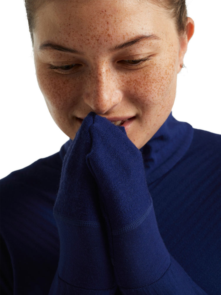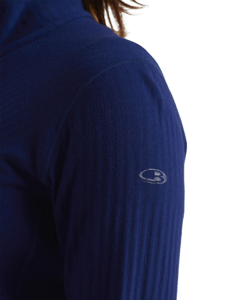 Bluza damska Icebreaker Descender LS Zip uszyta została z wysokogatunkowej wełny merino, którą poddano procesowi szczotkowania, aby zapewnić maksymalną miękkość oraz komfort termiczny. Dodatek lycry zapewnia bluzie elastyczność, co w znacznym stopniu zwiększa mobilność użytkownika. Doskonałe zarządzanie wilgocią pozwala na sprawne odprowadzenie wytworzonego podczas wysiłku potu z dala do skóry pozostawiając suchy i komfortowy klimat. Bluza na wiele dni zachowuje świeżość, a to za sprawą cech antybakteryjnych, które hamują rozwój mikrobów. Zastosowanie płaskich szwów oraz obniżonych w obrębie ramion zapobiega uszkodzeniom skóry spowodowanych długotrwałym noszeniem ekwipunku. Zaletą bluzy są otwory na kciuki, które zapewniają stabilność oraz dodatkowe ciepło. Wysoki kołnierz z osłoną podbródka oraz obniżony tył dodatkowo chronią przed chłodnym powietrzem.