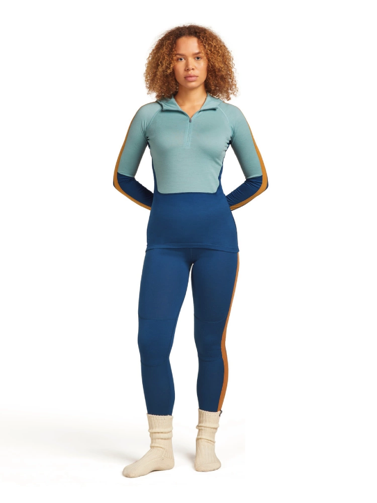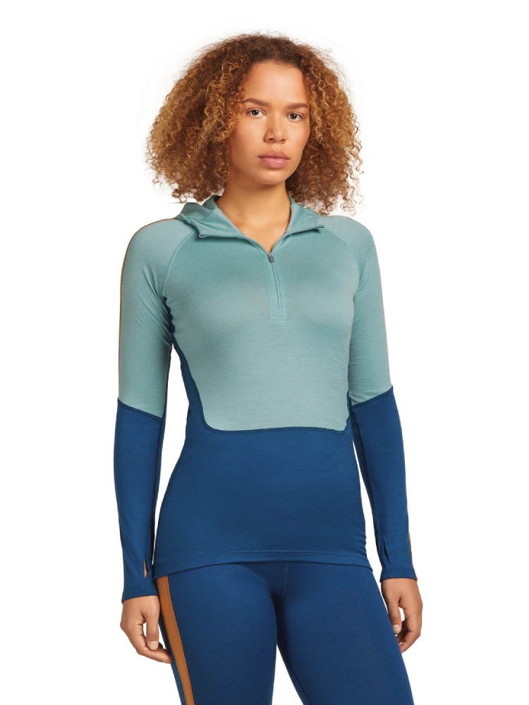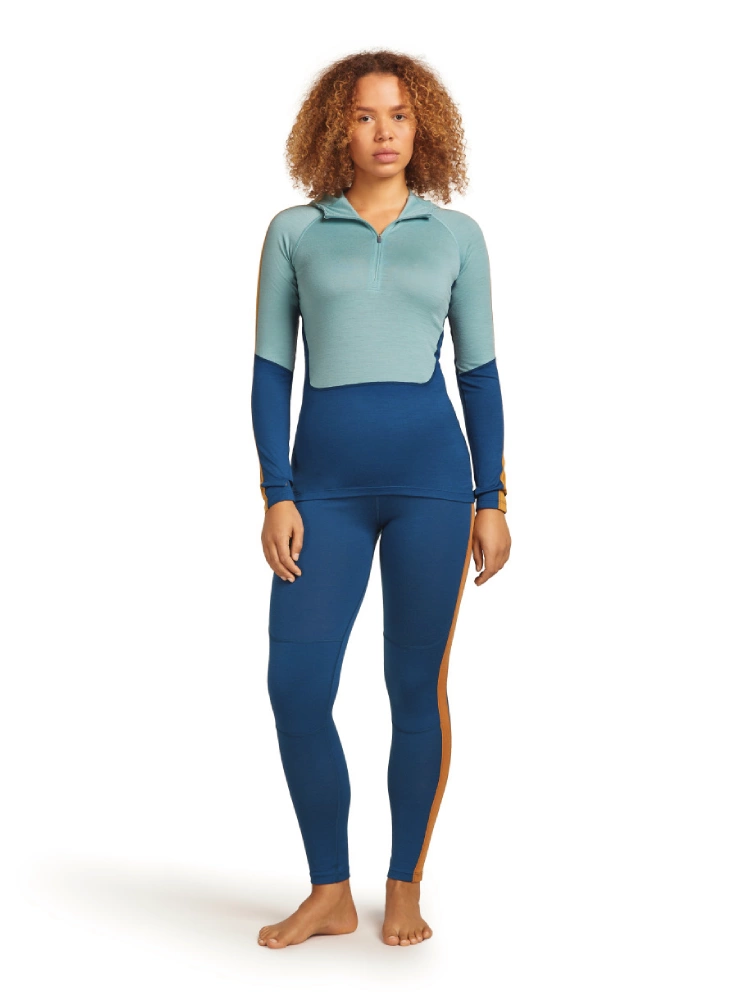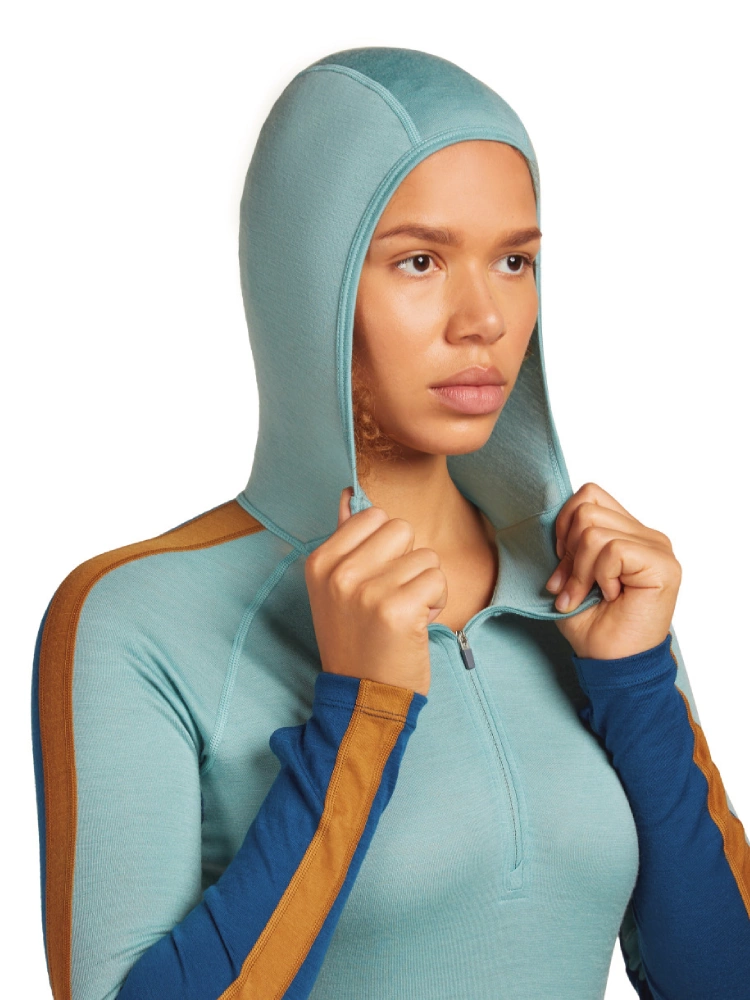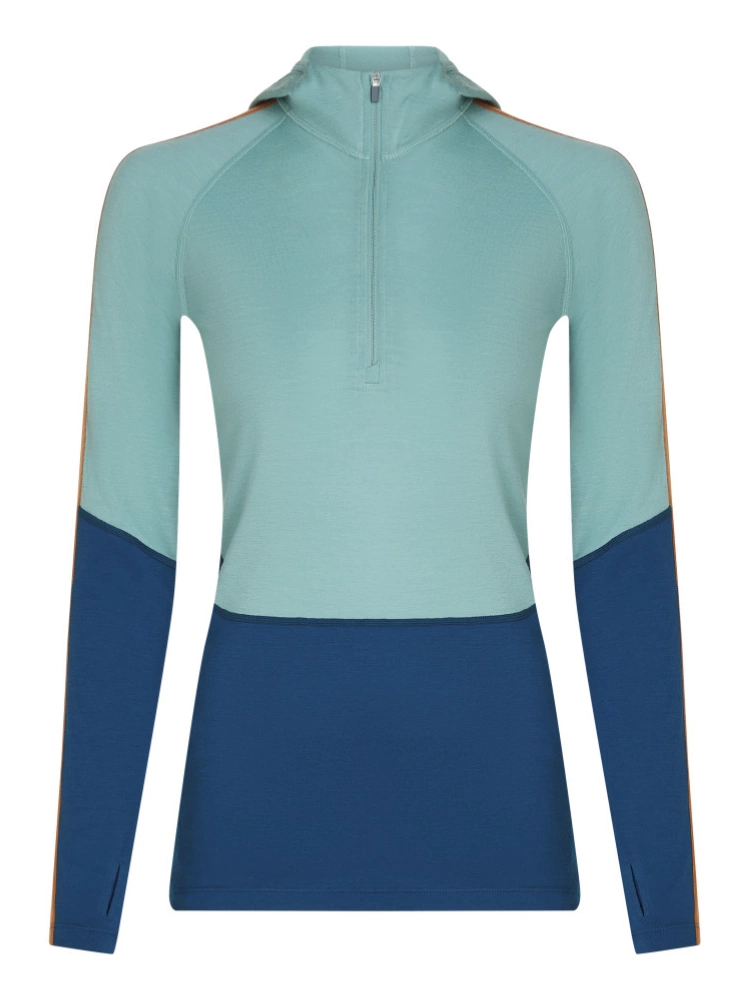 Koszulka termiczna damska z kapturem Icebreaker Merino 200 Oasis+ LS Half Zip Hoodie niebiesko-pomarańczowa